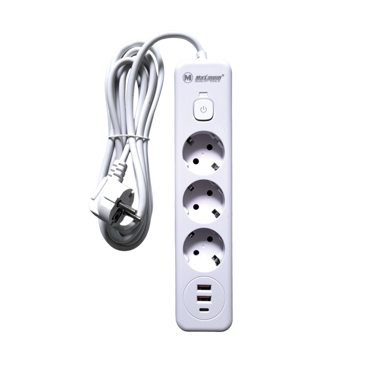 Удлинитель с заземлением 2 м, глубокий, 3 EURO розетки, 5 USB портов,Type C, U 314, "MAXIMUM" MX 147
