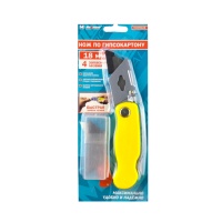 Строительный нож изготовлен в пластиковом корпусе.